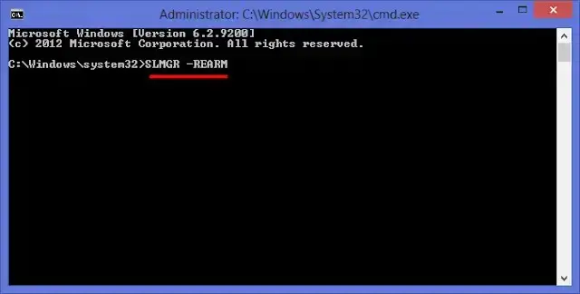 Step 2. Once the command prompt is opened now type the following command, SLMGR -REARM , make sure you type the same command without any mistake, and also ensure that command prompt is opened in administrator mode otherwise it will not work.